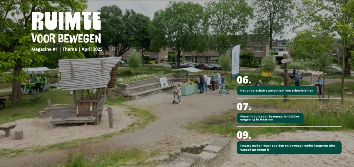 Welkom bij de allereerste editie van ons digitale magazine, gepresenteerd door het platform Ruimte voor Bewegen. Net als op het platform vind je in het magazine de brede scope van de beweegvriendelijke omgeving terug: sporten, spelen, bewegen en ontmoeten.